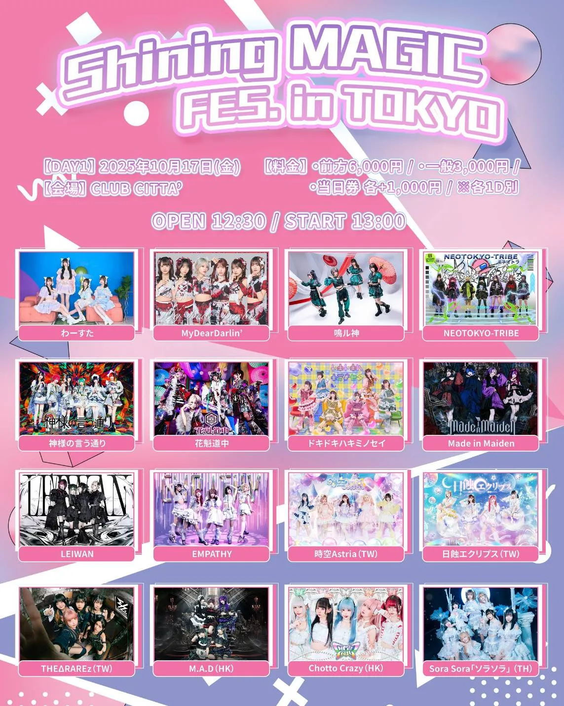 わーすた / MyDearDarlin’ / 鳴ル神 / 神様の言う通り / LEIWAN / EMPATHY / 花魁道中 / Made in Maiden / NEOTOKYO-TRIBE / ドキドキハキミノセイ / 日蝕エクリプス(台湾) / THEΔRAREz(台湾) / 時空Astria(台湾) / Chotto Crazy(香港) / M.A.D(香港) / Sora Sora(タイ)