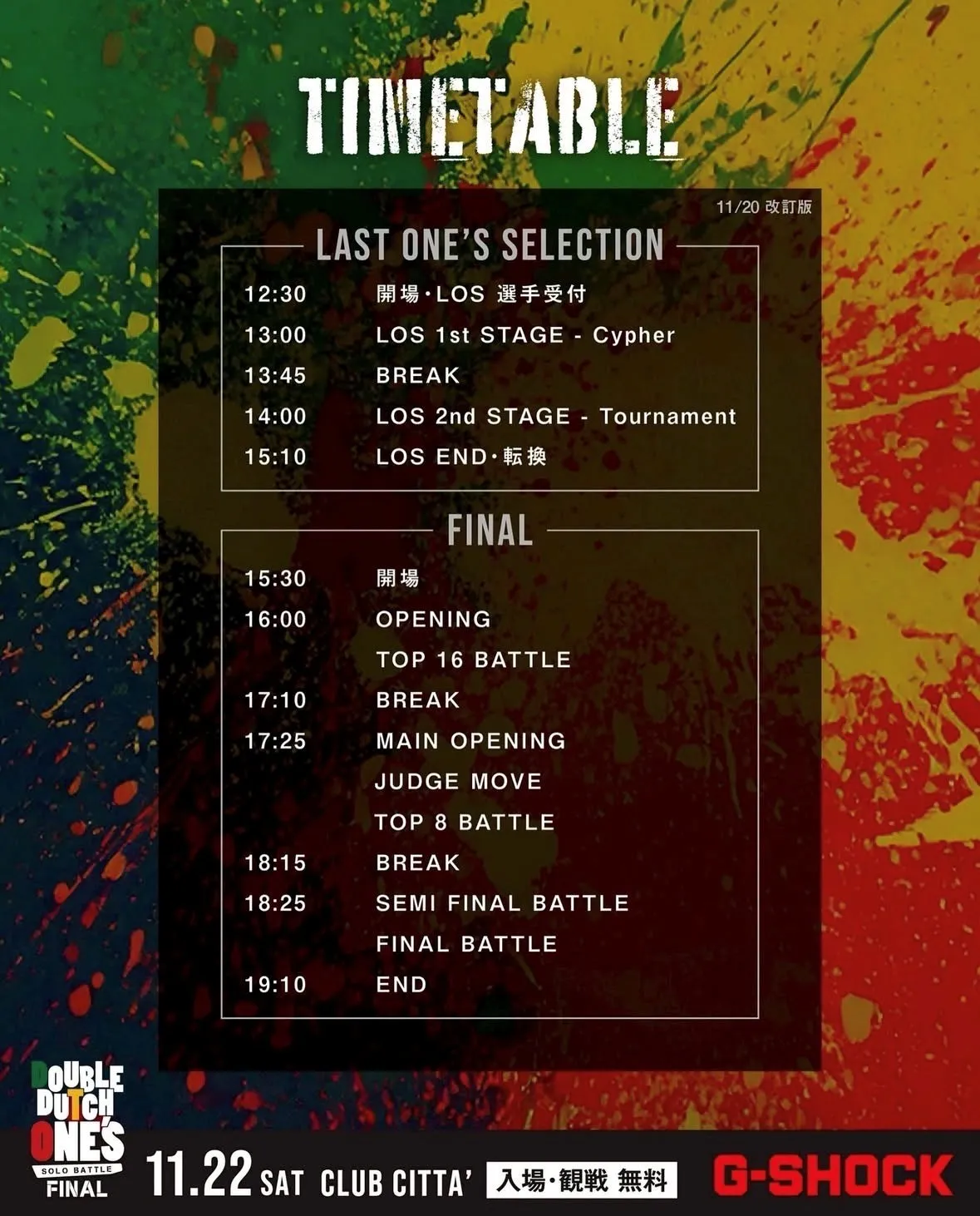 【FINAL】OPEN 15:30 / START 16:00 / END 19:10