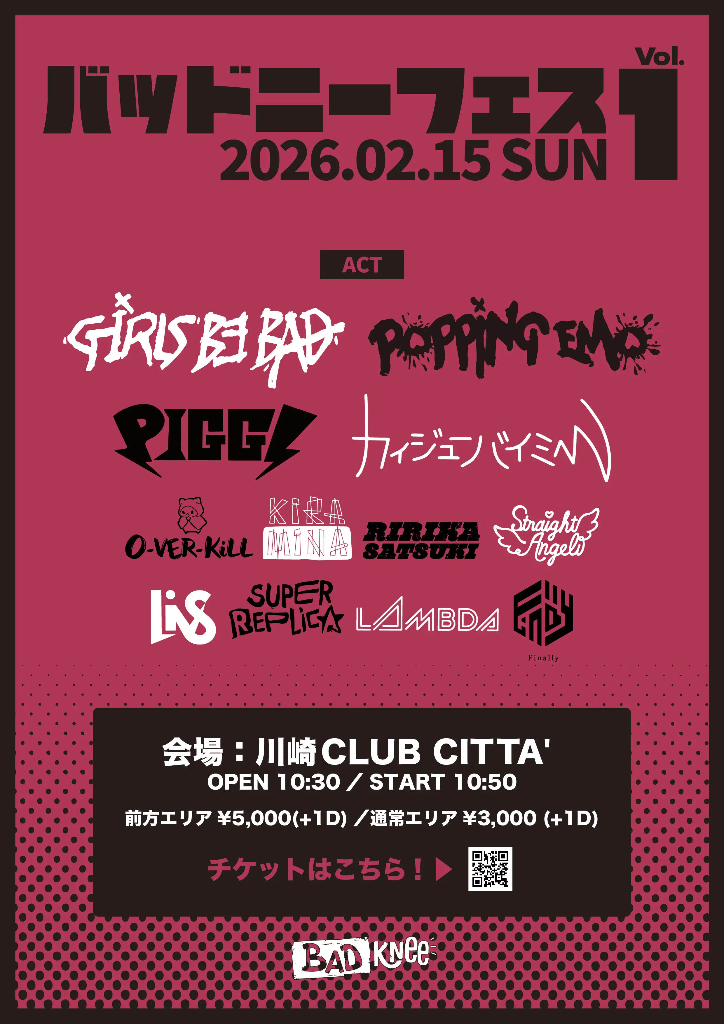 【出演】Girls be bad / POPPiNG EMO / PIGGS / カイジューバイミー / O-VER-KiLL / KIRA:MINA / 砂月凜々香 / Straight Angeli / LiVS / Finally / SUPER REPLiCA / LΛMBDA