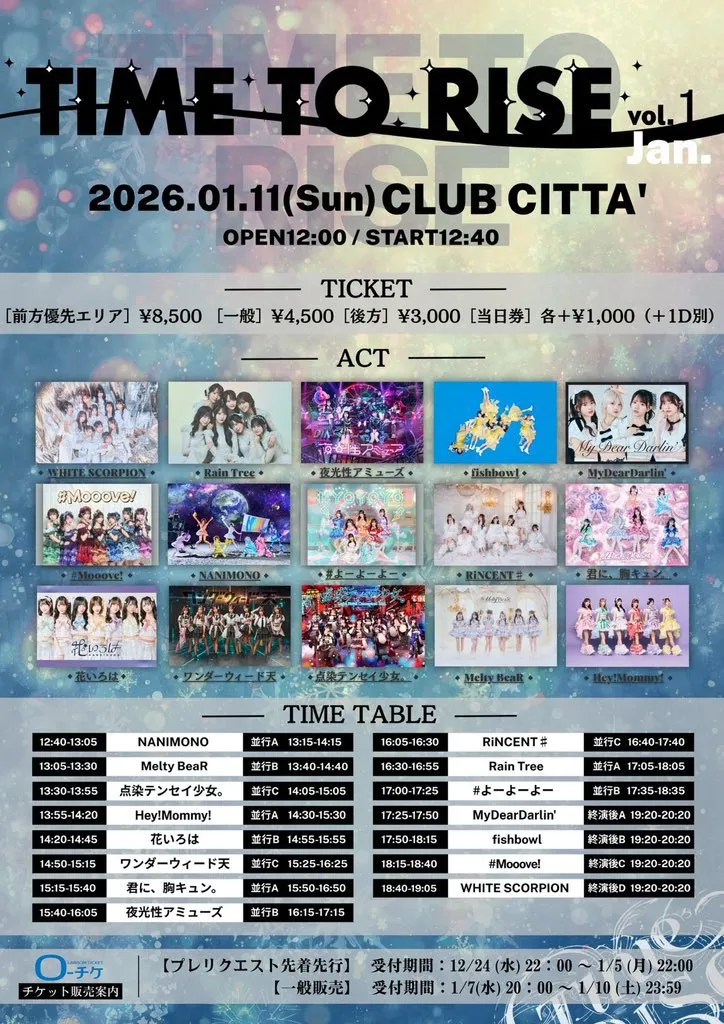 【出演】WHITE SCORPION / #Mooove! / fishbowl / MyDearDarlin' / #よーよーよー / Rain Tree / 夜光性アミューズ / RiNCENT♯ / ワンダーウィード天 / 花いろは / 点染テンセイ少女。/ Melty BeaR / Hey!Mommy! / NANIMONO / 君に、胸キュン。