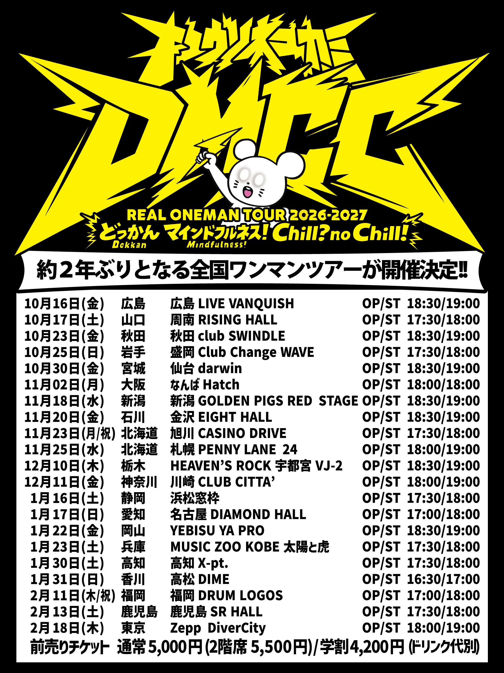 キュウソネコカミ 「DMCC REAL ONEMAN TOUR 2026-2027 〜どっかん マインドフルネス! Chill? no Chill!〜」