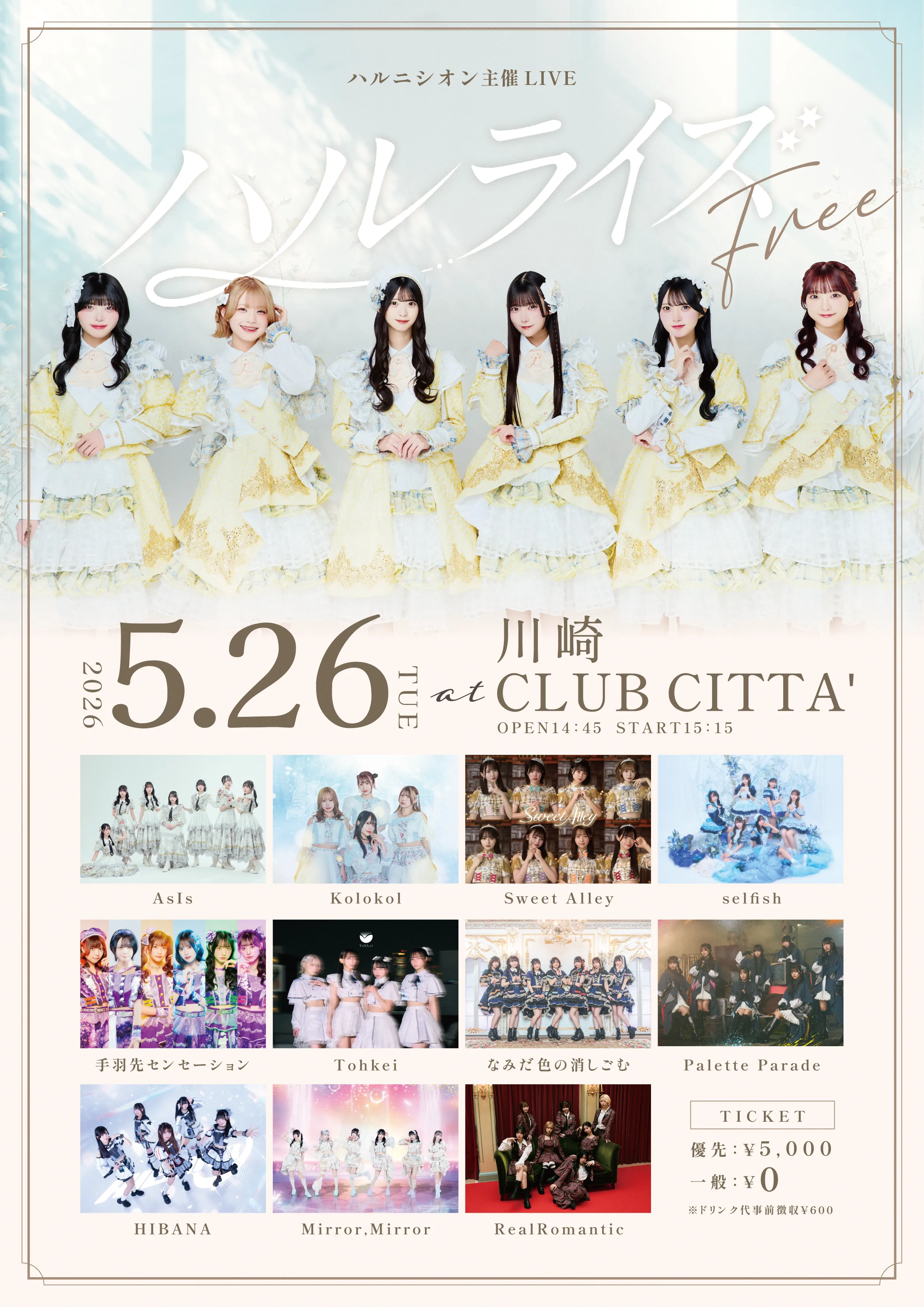 【出演】ハルニシオン / AsIs / Kolokol / Sweet Alley / selfish / 手羽先センセーション / Tohkei / なみだ色の消しごむ / Palette Parade / HIBANA / Mirror,Mirror / RealRomantic